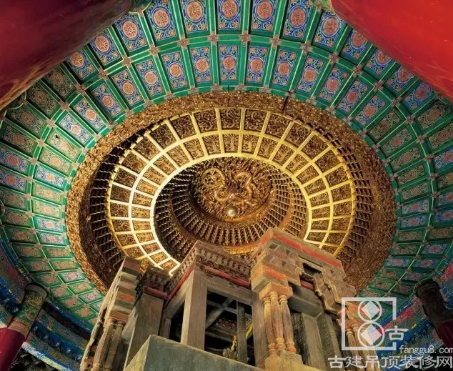 藻井吊顶的在古建建筑装修中是一种比较广泛使用的吊顶装修方式。在寺庙古建宫殿装修中,现在一般采用不锈钢做骨架,用铝扣板或PVC做面板,彩绘做饰面终饰的藻井式吊顶。这种藻井吊顶能够克服寺庙,提高寺庙古建的档次,降..