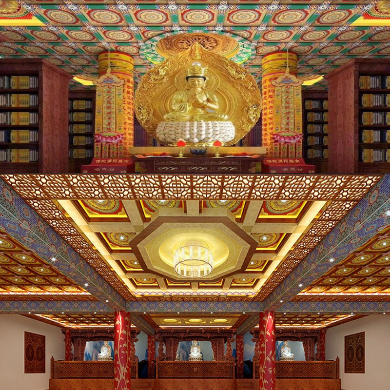 寺庙的建筑风格是以塔庙,以塔为中心,周围建以殿堂、僧舍。塔中供奉着舍利、佛像等,是寺院的中心建筑。唐代以后,佛塔多建寺前、寺后或另建塔院,形成了以大雄宝殿为中心的佛寺结构。寺院坐北朝南,主要殿堂依次分布在中轴线上,层次分明,布局严谨。宋代时,禅宗兴盛,形成了“伽蓝七堂”制度,七堂指佛殿、法堂、僧堂、库房、山门、西净、浴室。规模较大的寺院还有讲堂、禅堂、经堂、塔、钟楼等。建于山上的佛寺也依此而建。明清以来,佛寺建筑格局已成定式,一般在中轴线上由南向北依次分布着山门殿、天王殿、大雄宝殿、法堂、藏经楼、毗卢阁、观音殿。大雄宝殿是佛寺的主体建筑,东西两侧的配殿为钟楼与鼓楼,伽蓝殿与祖师堂,观音殿与药师殿相对应。大的寺院有五百罗汉堂、佛塔等建筑。中轴线东侧分布僧房、香积厨、斋堂、职事堂等,是寺内僧人的起居生活区;现在寺院对外开放后,生活区一般都后移,或在寺院后侧重建。中轴线西侧主要为禅堂、接待室等,是前来挂单僧人修行之所,现在也基本上对外开放,有的辟为文物陈列室、佛经流通处。
