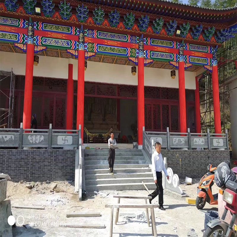 1、外檐斗栱:处于建筑物外檐部位。分为柱头科、平身科、角科斗拱;其中,转角斗拱的结构最为复杂,所起作用也是最大。